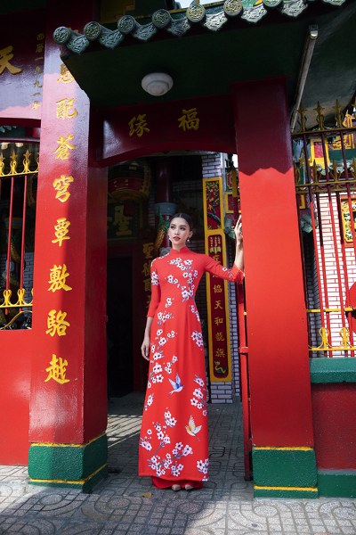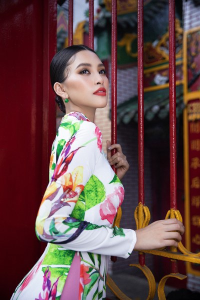 Hoa hậu Tiểu Vy khoe sắc mặn mà trong trang phục áo dài truyền thống của nhà thiết kế Liên Hương.