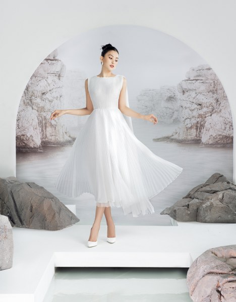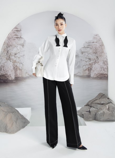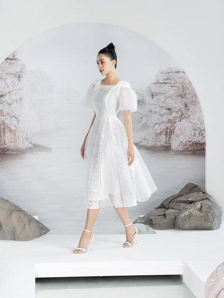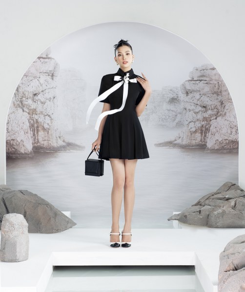 Hoa hậu Tiểu Vy thanh lịch trong các sắc trắng, đen đặc trưng trong các thiết kế của Hà Thanh Việt.