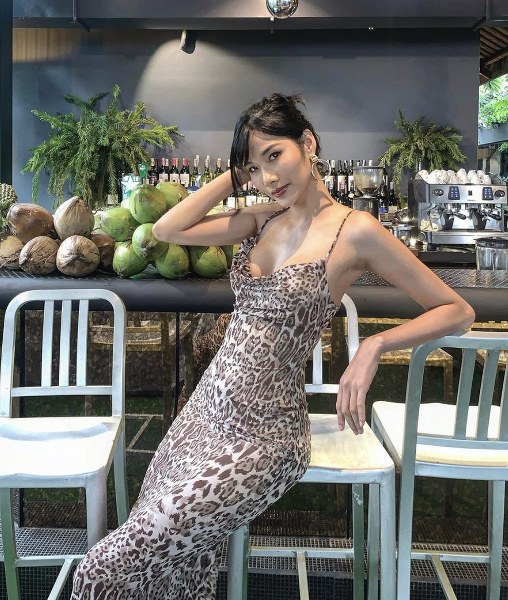Á hậu Hoàng Thuỳ tận dụng các kiểu đầm liền thân, ôm sát body để khoe ưu điểm.