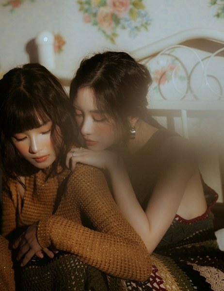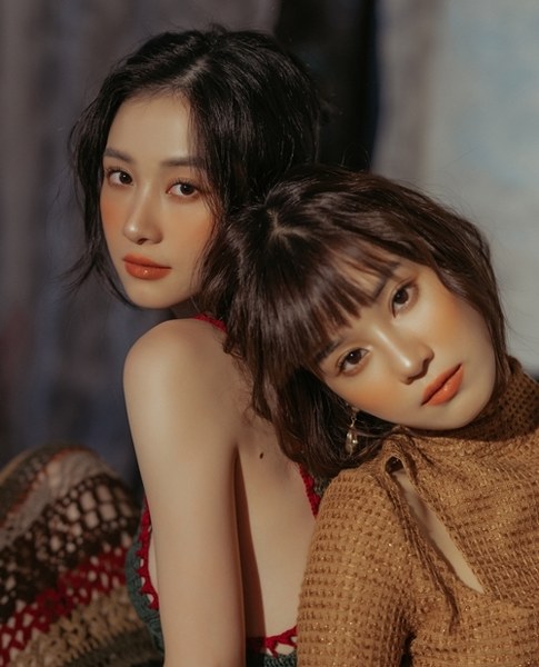 Sau những lần \"dìm hàng\" nhau trên Facebook, Hoàng Yến Chibi và Jun Vũ chụp bộ ảnh vai tựa vai, má kề má, kỷ niệm ba năm chơi thân từ phim \"Tháng năm rực rỡ\".