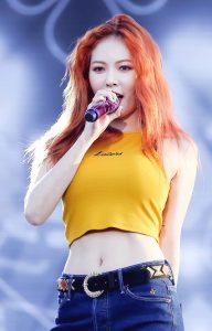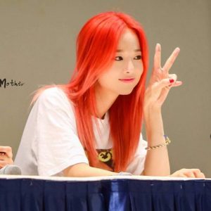 Một mẩu của EXID xuất hiện vô cùng đáng yêu với cách mix đồ độc đáo: diện áo phông trắng bên trong một set đồ trơn màu. Gam màu xanh lá cây – trắng đối lập về sắc độ giúp tôn trọn vẹn nước da trắng sứ không tì vết của cô nàng.