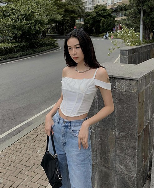 Áo crop-top thun được nhiều sao Việt như Khổng Tú Quỳnh, Phí Phương Anh, Sĩ Thanh... ưa chuộng ở mùa hè năm nay.