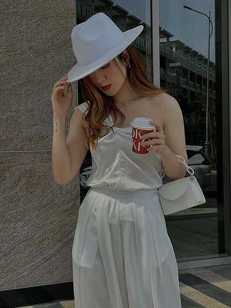 Lựa chọn váy ren với các thiết kế hai dây điệu đà cũng là xu hướng được Yến Nhi ưa chuộng trong mùa hè năm nay. Ngoài cách đồ mix ton-sur-ton, các nàng có thể chọn phụ kiện màu tương phản để tăng sức hút cho set đồ.