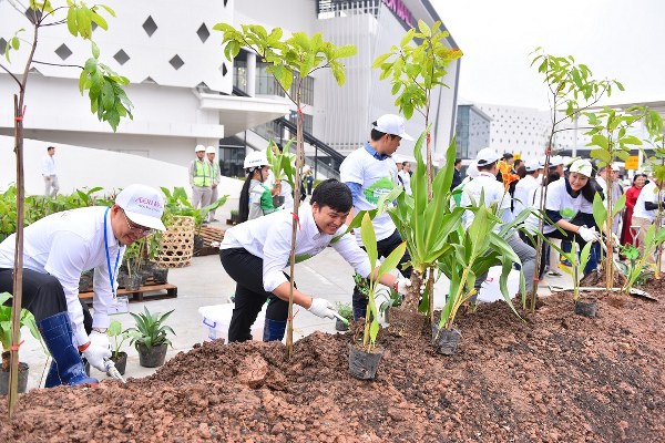 Trên hành trình xây dựng lối sống xanh - sạch - văn minh, AEONMALL Việt Nam đã cùng với hơn 1.000 người dân địa phương, học sinh và sinh viên tham gia trồng cây phủ xanh không gian trung tâm thương mại (TTTM) AEON MALL Hà Đông tại sự kiện Lễ trồng cây "Cánh rừng quê hương AEON".