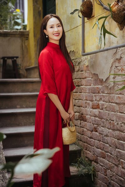 Nữ diễn viên "Hoa hồng trên ngực trái" yêu thích phong cách nhẹ nhàng nên thường xuyên lựa chọn áo dài.
