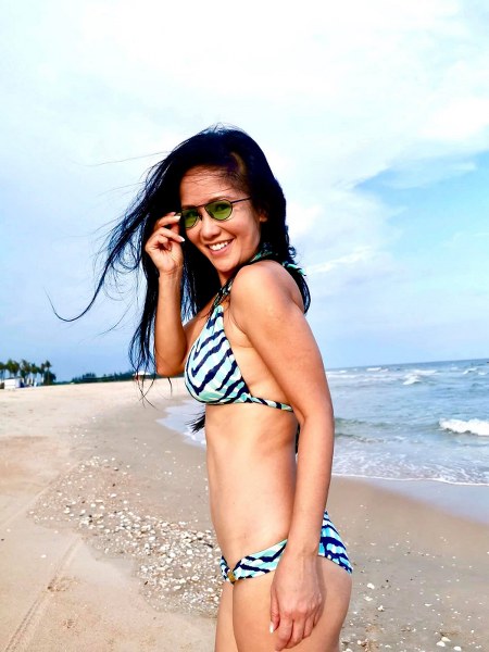 Ca sĩ Hồng Nhung được bạn bè, khán giả khen trẻ trung, gợi cảm như mới ngoài 20 khi diện bikini khoe eo 60cm trong các chuyến đi biển.