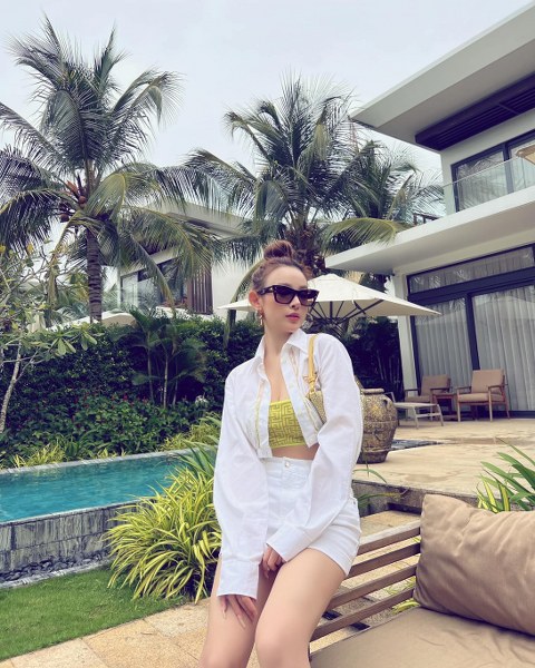 Mỹ nhân gốc Hà Nội có nhiều góc "sống ảo" trong biệt thự xa hoa.