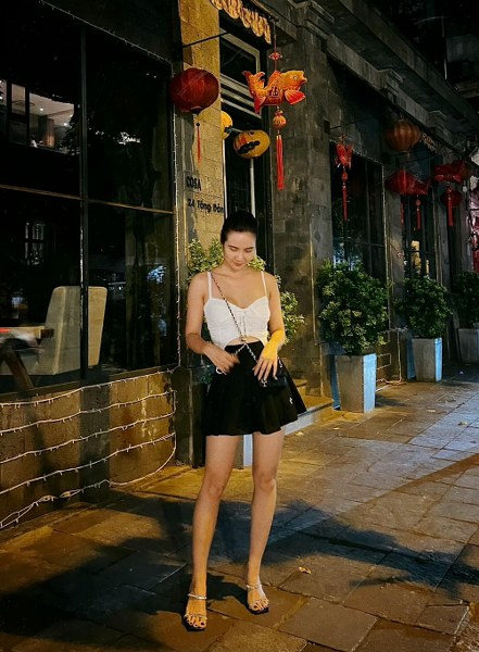 Đời thường, nữ diễn viên Huyền Lizzie chuộng diện các loại áo croptop để khoe eo thon gợi cảm.