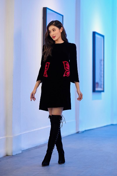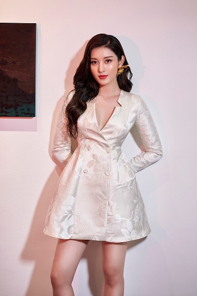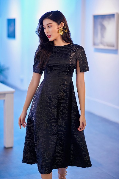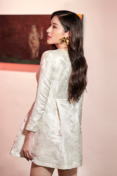 Các chất liệu nhung the, gấm hoa… vốn kén người mặc nhưng qua sự sáng tạo của Hà Linh Thư, những trang phục vẫn mang vẻ trẻ trung, tươi mới, bắt kịp hơi thở của cuộc sống hiện đại.