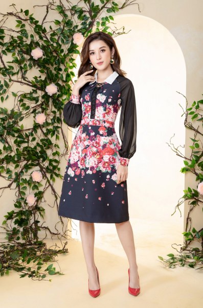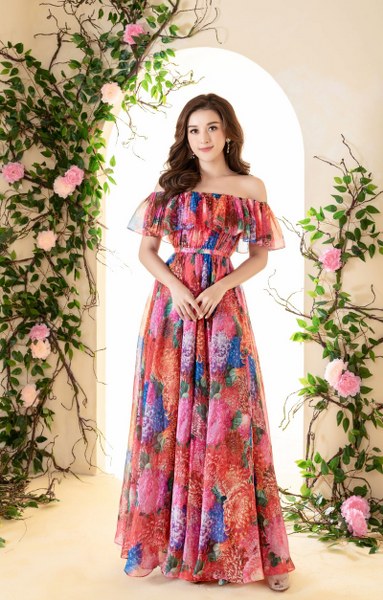 Lấy cảm hứng từ 2 loài hoa: hồng mẫu đơn và cúc đại hóa – nữ hoàng trong các loài hoa trở thành nguồn cảm hứng và họa tiết chính của BST. Á hậu Huyền My trở thành nàng thơ của NEVA khi xuất hiện cùng những sức hút ấn tượng này. Cô như đang khám phá và tận hưởng vẻ đẹp ấn tượng của thời trang.