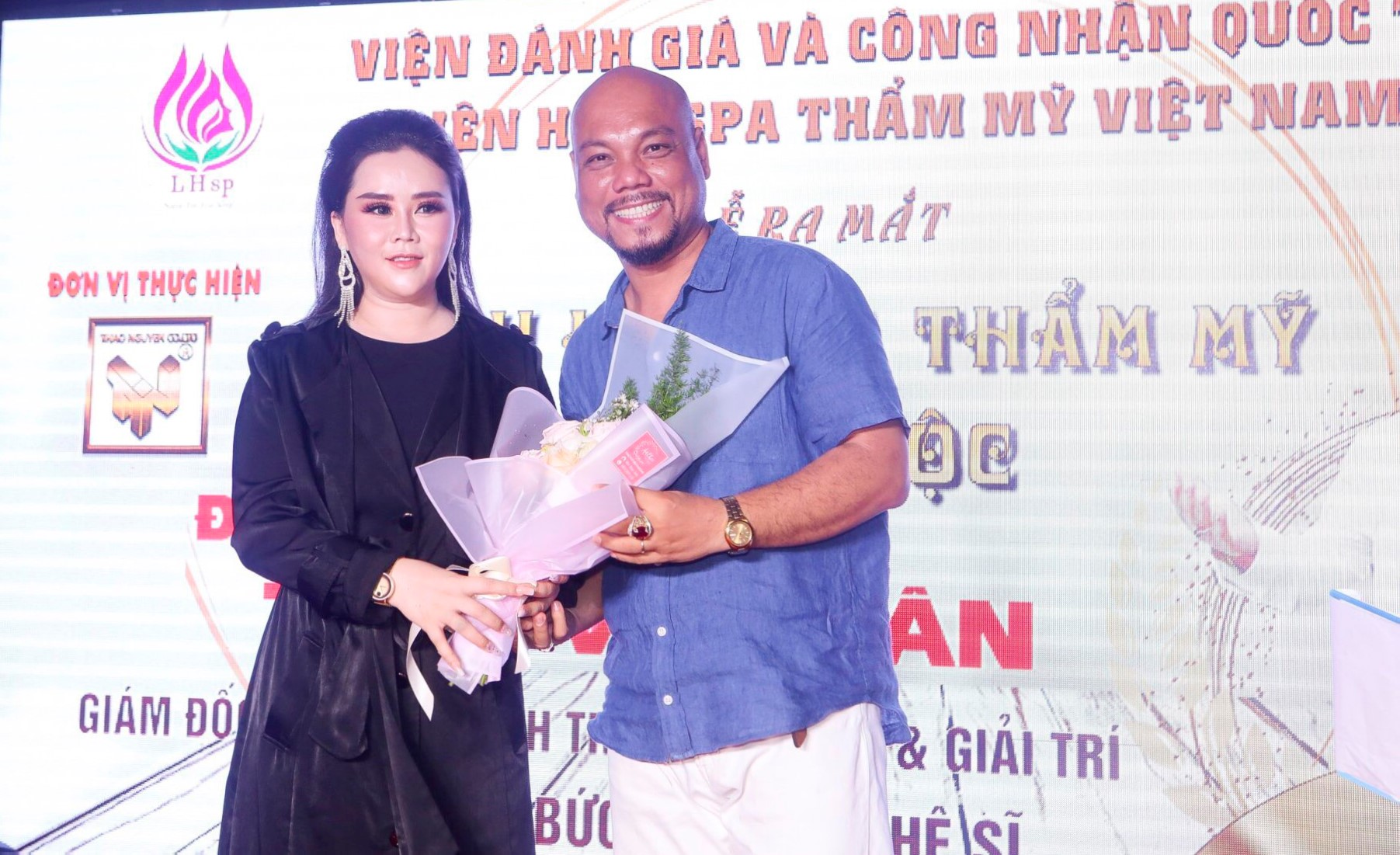 MC Minh Hưng, Jessica Thảo Nguyên Hoàng (Tân Chủ tịch chi Hội Spa thẩm mỹ Bảo Lộc) và bà Vũ Thanh Hải (Phó Chủ tịch Liên Hiệp Spa thẩm mỹ Việt Nam)