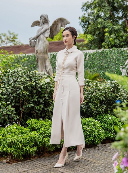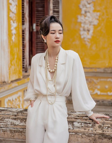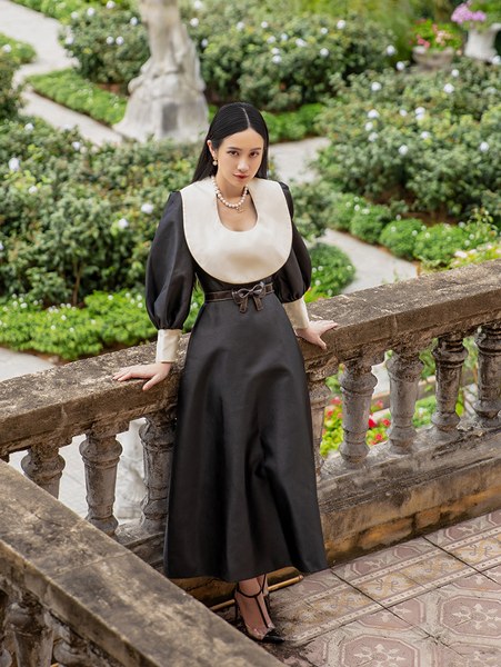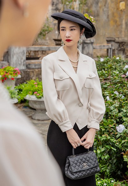 Đảm nhận vai phụ không thoại trong phim điện ảnh \"Gái già lắm chiêu V\", Jun Vũ diện 8 thiết kế cổ điển thanh lịch của Nguyễn Phúc Tuấn.