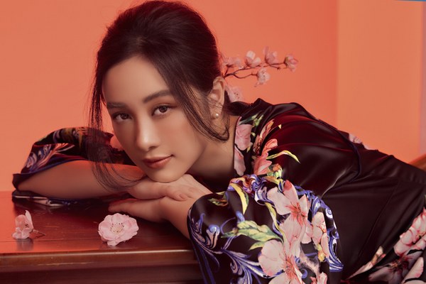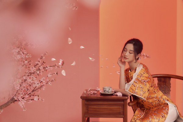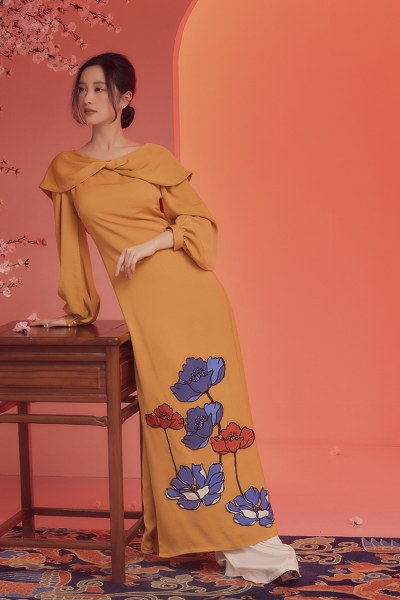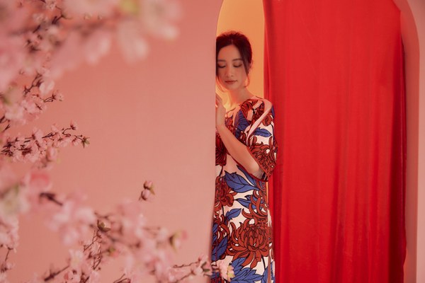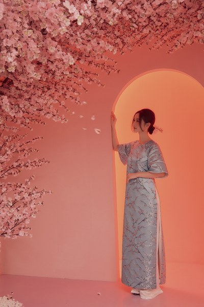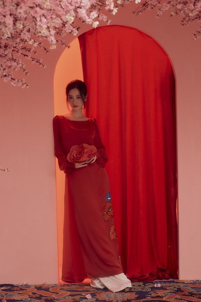 Diễn viên Jun Vũ giới thiệu các mẫu trang phục áo dài cách tân dành cho xuân 2020 của nhà thiết kế Adrian Anh Tuấn.