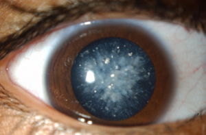 Đây là căn bệnh cướp đi ánh sáng từ đôi mắt người cao tuổi nhiều nhất hiện nay. Biểu hiện của bệnh là nhìn mờ cả hai bên khá cân xứng như nhìn qua ống. Mức độ giảm thị lực cũng rất khác biệt, từ mức còn một vài phần mười đến mức chỉ còn nhận biết được ánh sáng. Một số người già tự nhiên lại đọc sách được mà không cần kính khi họ bị đục thể thủy tinh. Có bệnh nhân than phiền vì cảm giác nhìn thấy nhiều vật cùng một lúc, nhìn như qua sương mù…