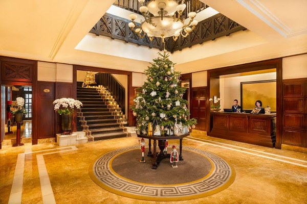 Không gian thanh lịch vốn có của khách sạn 123 năm tuổi sẽ càng trở nên huyền ảo hơn với sắc vàng ấm áp và ánh sáng lung linh cùng những món đồ trang trí lấp lánh