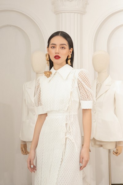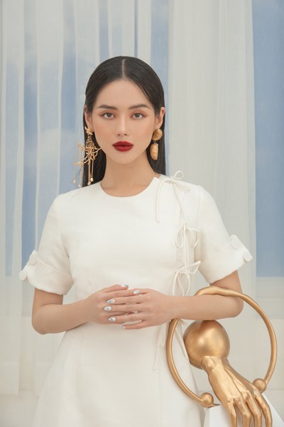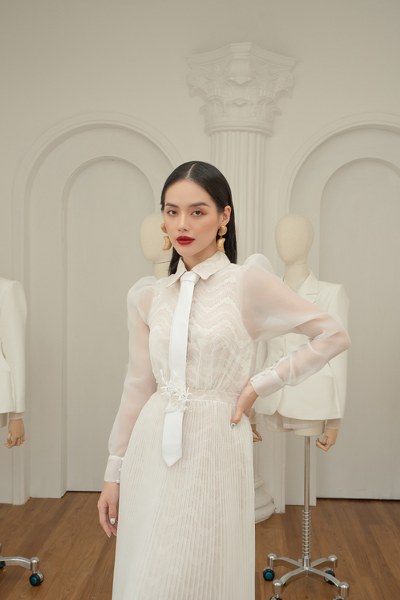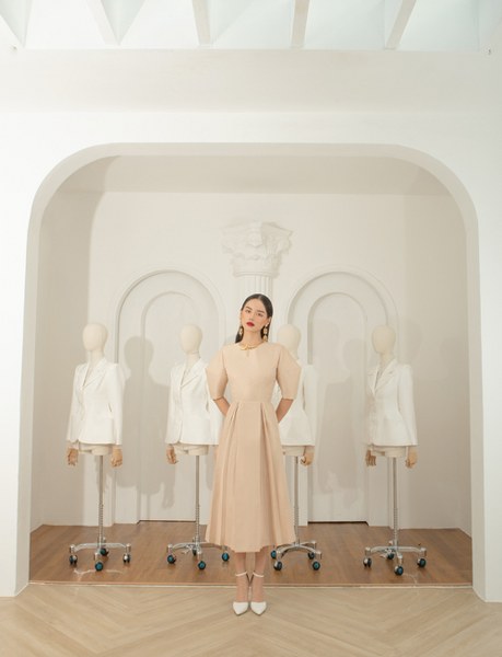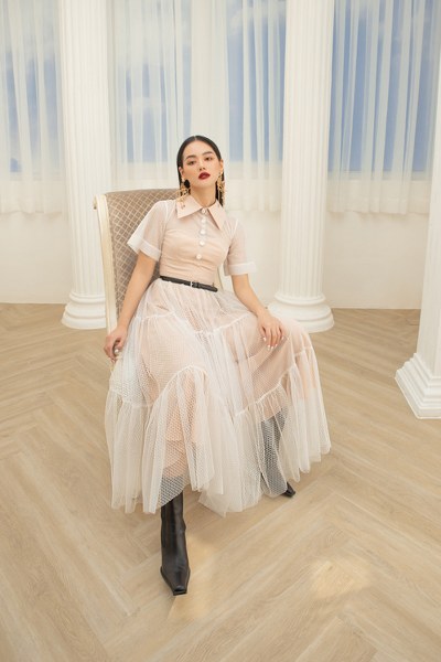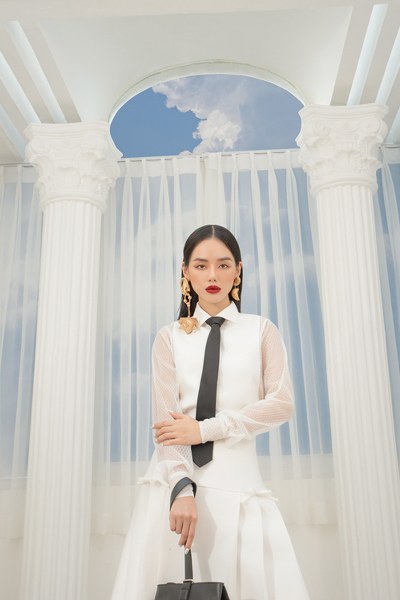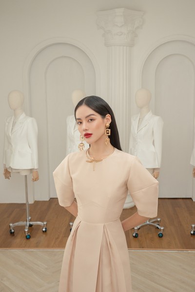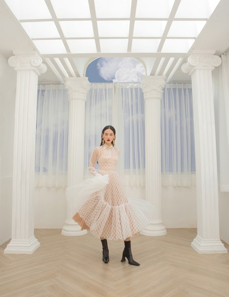 Khánh Linh giúp nhà thiết kế Hà Thanh Việt giới thiệu các mẫu trang phục thanh lịch, tông màu trang nhã, hợp xu hướng 2021.