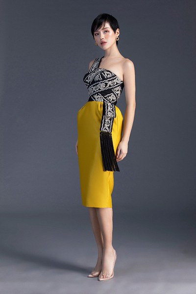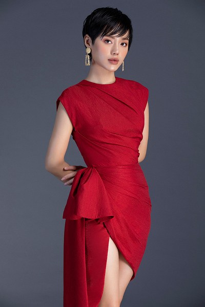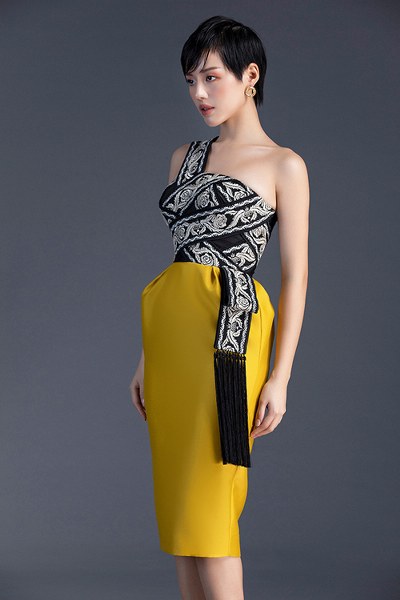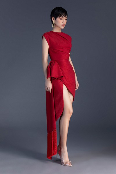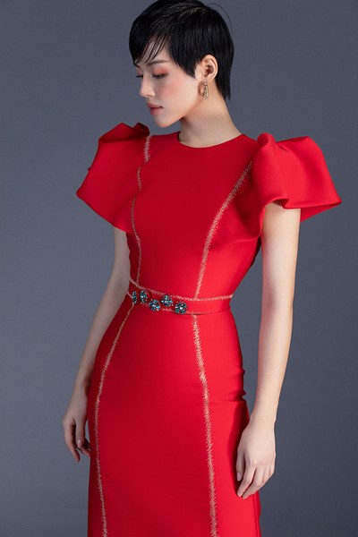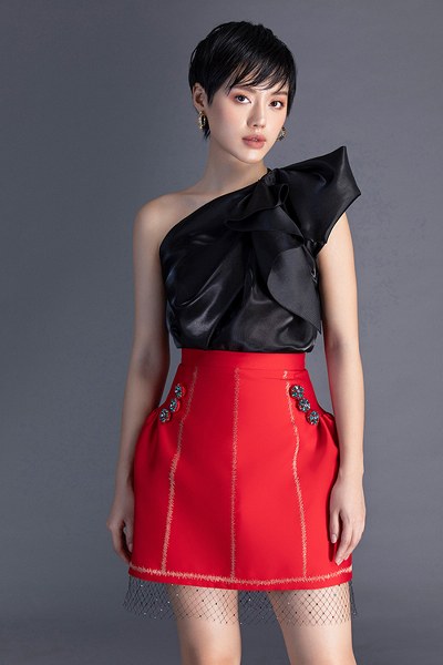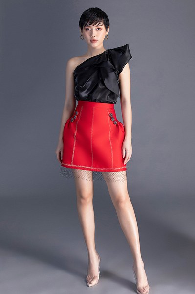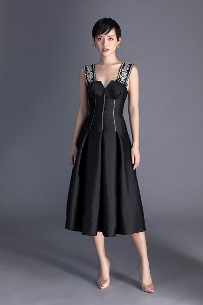 Khánh Linh giúp nhà thiết kế Đỗ Long giới thiệu các mẫu đầm kiểu dáng trẻ trung, phù hợp chưng diện vào dịp đầu năm.