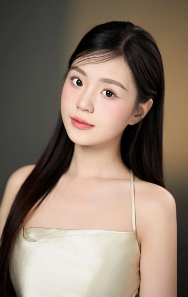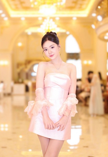 Khánh Như, 22 tuổi, Á hậu 1 Miss World Vietnam, có gương mặt trái xoan, nụ cười má lúm.