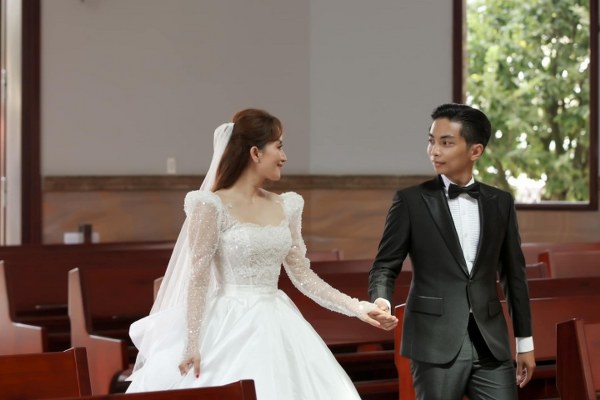 Loạt khoảnh khắc rạng rỡ của Khánh Thi - Phan Hiển cùng hai con tại nhà thờ được ghi lại trong MV "Ngày trọng đại".
