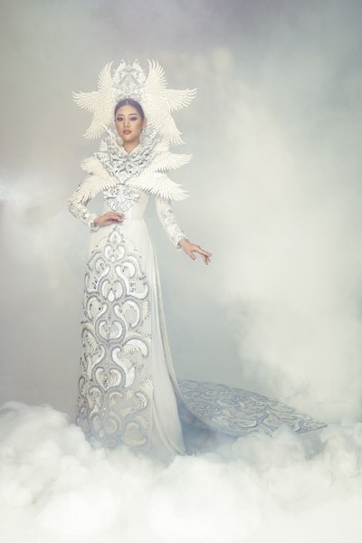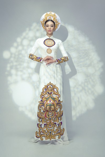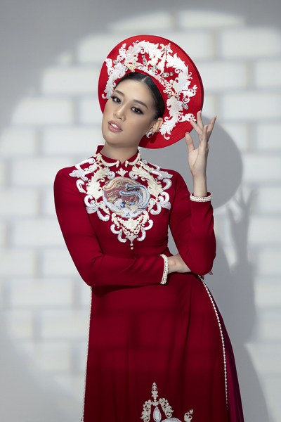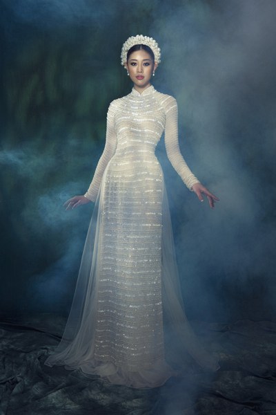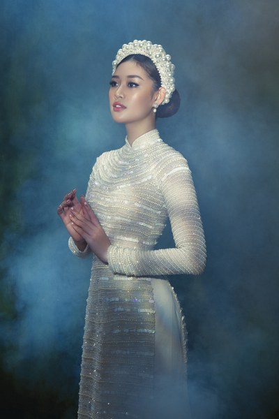 Khánh Vân diện áo dài cưới phá cách, phom dáng ôm giúp khoe khéo đường cong gợi cảm.