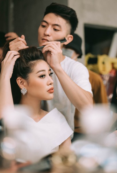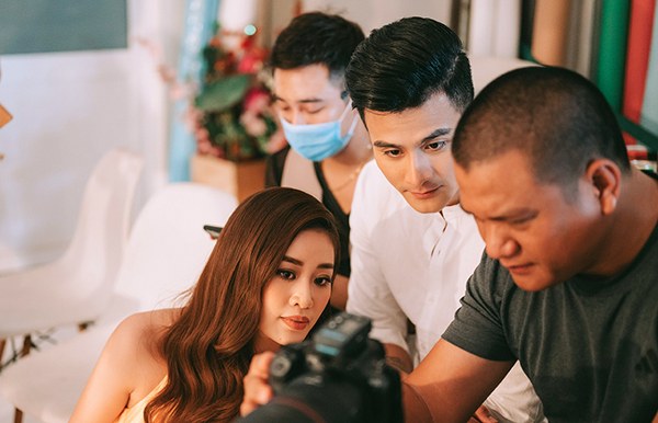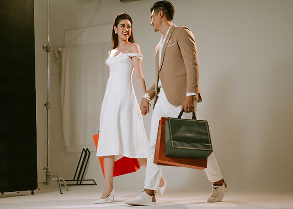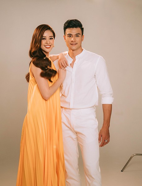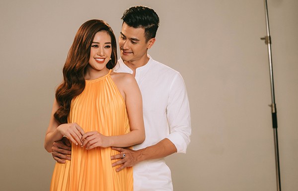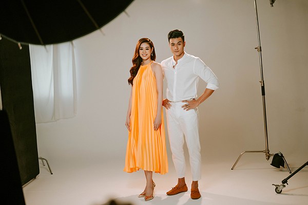 Siêu mẫu Vĩnh Thuỵ và Hoa hậu Khánh Vân có nhiều cảnh tình tứ khi đóng quảng cáo chung.