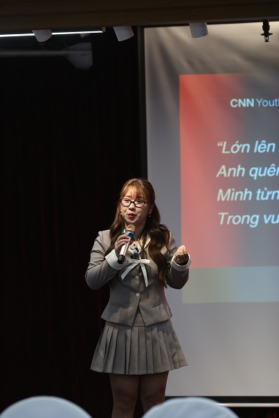 Buổi diễn thuyết không chỉ có sự góp mặt của các diễn giả khách mời chuyên nghiệp mà còn là sân khấu để các bạn học sinh có cơ hội bày tỏ những suy nghĩ, chia sẻ những trải nghiệm của mình trong nhiều lĩnh vực.