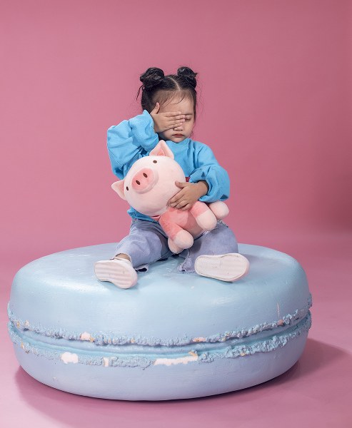 Bé Anna, con gái của vợ chồng Khánh Thi - Phan Hiển, liên tục làm xấu và khóc nhè, khiến cả nhà phải dỗ dành khi chụp ảnh gia đình.