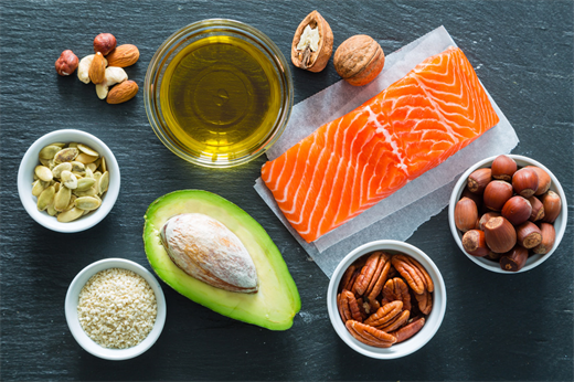 Nên ăn thực phẩm chứa chất béo không bão hòa (cá, bơ, các loại hạt, dầu olive, dầu nành, dầu hạt cải, dầu hạt hướng dương, dầu bắp) hơn là thực phẩm chứa chất béo bão hòa (thịt mỡ, bơ, dầu cọ hoặc dầu dừa, phô mai, kem, bơ tinh, mỡ động vật).