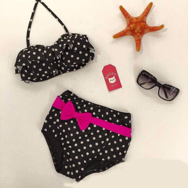 Áo tắm và quần bikini không nhất thiết cứ phải cùng màu. Bạn có thể phối màu rực rỡ cho phần trên và màu trầm hơn cho phần dưới như thế này. Đặc biệt đối với cô nàng có vòng hông lớn nhưng vòng ngực nhỏ. Bạn có thể phối hợp áo tắm màu hồng hay màu xanh với quần tắm màu đen chẳng hạn.