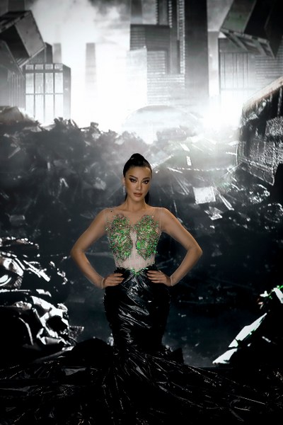 Đại diện Việt Nam – Á hậu Kim Duyên và NTK Chung Thanh Phong đã cùng nhau tạo ra một bộ sưu tập thời trang làm từ rác thải nhựa và bao ni lông. Từ những món đồ đã bị bỏ đi và rất khó để phân huỷ sẽ gây ảnh hưởng xấu đến môi trường, chúng đã được xử lý thủ công và biến thành những bộ trang phục tuyệt đẹp.
