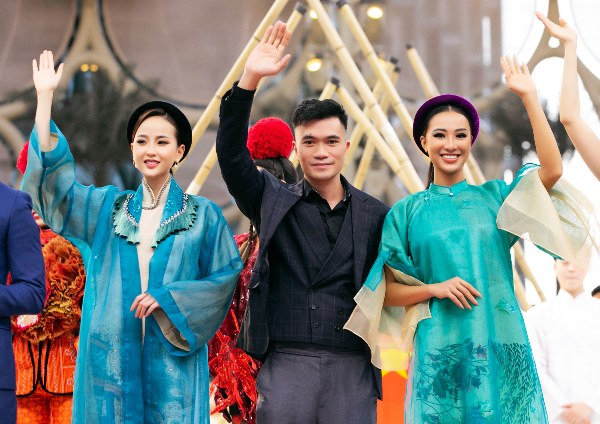 NTK Vũ Việt Hà (giữa) chào kết cùng Khánh Ngân và Kim Duyên. Chương trình nghệ thuật ‘Dòng chảy bất tận – The Eternal Flow’ thuộc khuôn khổ Triển lãm Thế giới EXPO đang diễn ra ở Dubai, UAE. Sự kiện do Bộ Văn hóa Thể thao và Du lịch, Cục hợp tác quốc tế, UBND tỉnh Đắk Nông và một công ty phối hợp tổ chức mừng Ngày Quốc gia Việt Nam.