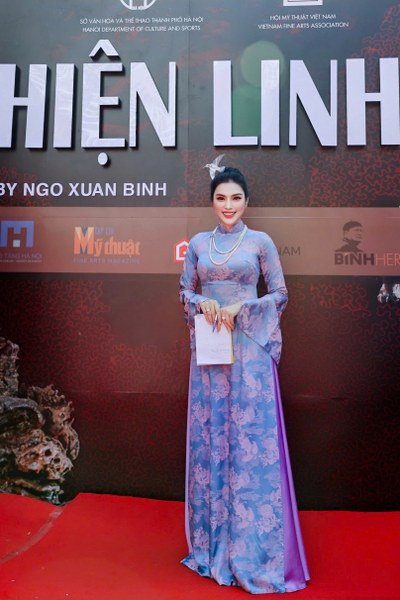Người đẹp Kim Huyền Sâm làm MC tại triển lãm "Hiện Linh" của họa sĩ Ngô Xuân Bính