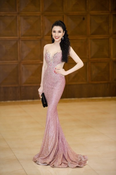 Xuất hiện tại sự kiện, Kim Huyền Sâm diện đầm dạ hội bó sát của NTK Tina Nguyễn.