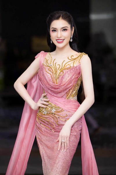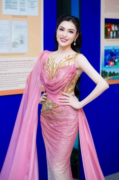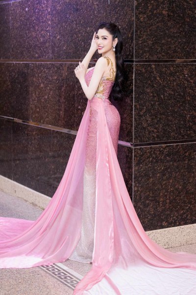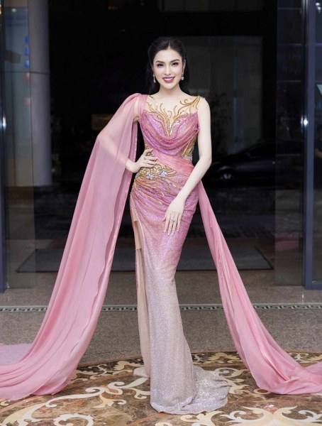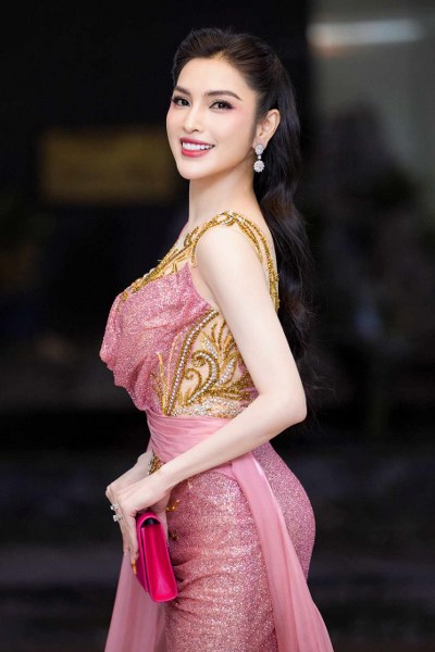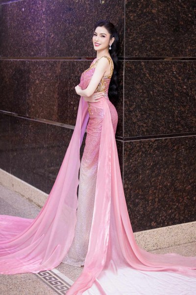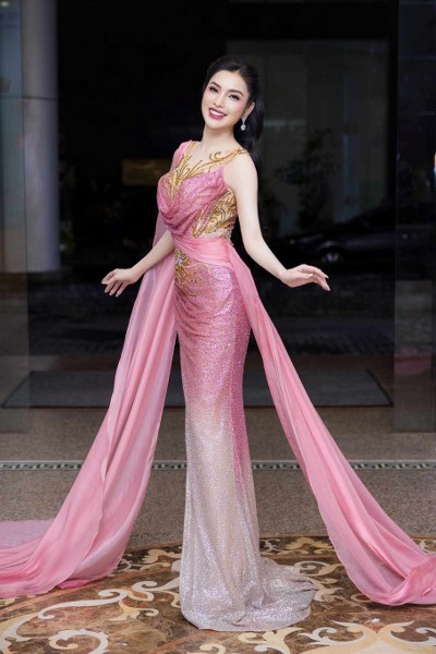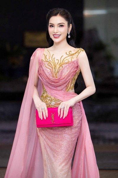 Tại một sự kiện mới đây, Nữ hoàng Tài năng Kim Huyền Sâm xuất hiện với bộ váy dạ hội màu hồng tôn hình thể gợi cảm.