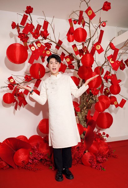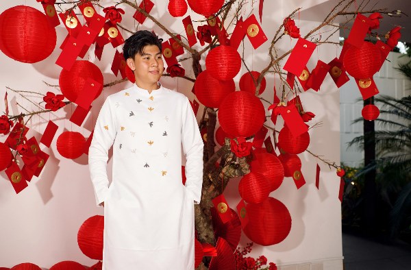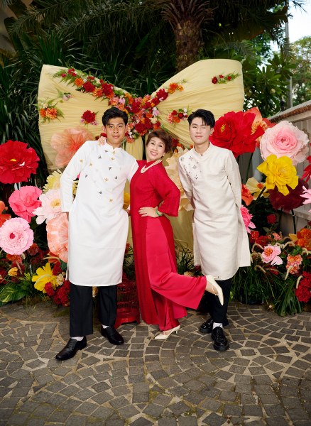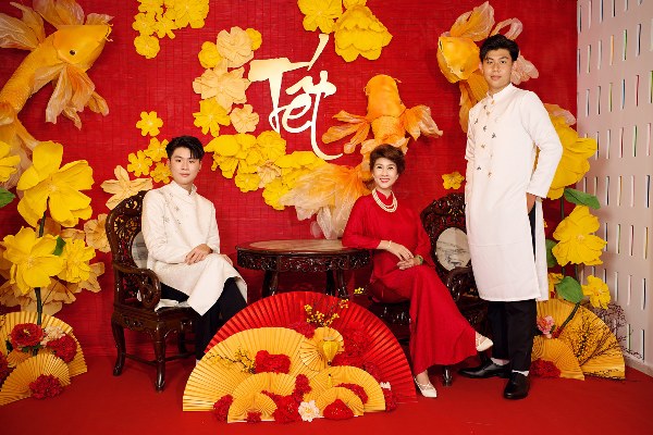 Diễn viên Kim Thư và con trai - Phước Quang, 18 tuổi, Phước Thịnh, 17 tuổi - cùng diện áo dài, chụp ảnh đón Tết Nguyên đán 2025.