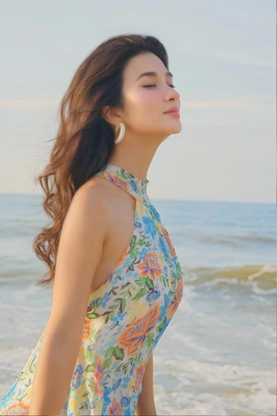 Đi biển, cô diện váy maxi hợp thời.