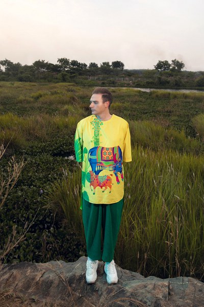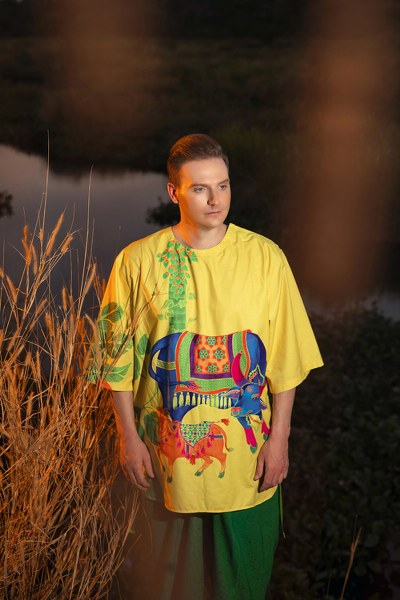 Kyo York làm mẫu cho Vũ Ngọc và Son với trang phục sặc sỡ đón xuân Tân Sửu.