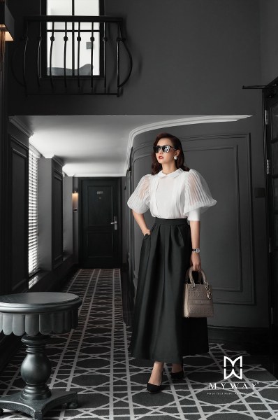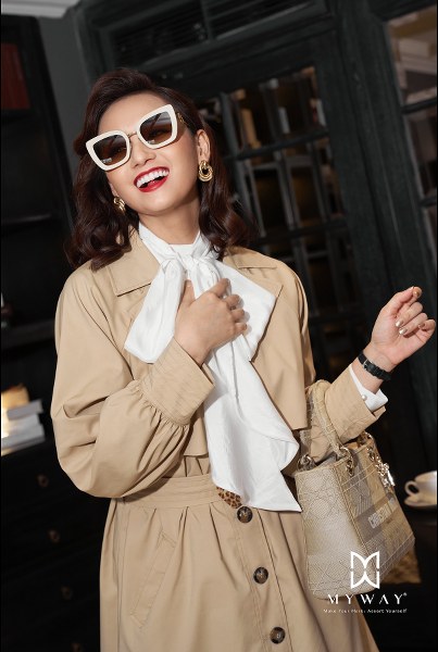 Diễn viên Lã Thanh Huyền \"hóa\" quý cô Paris với những thiết kế áo, váy, trench coat tối giản.