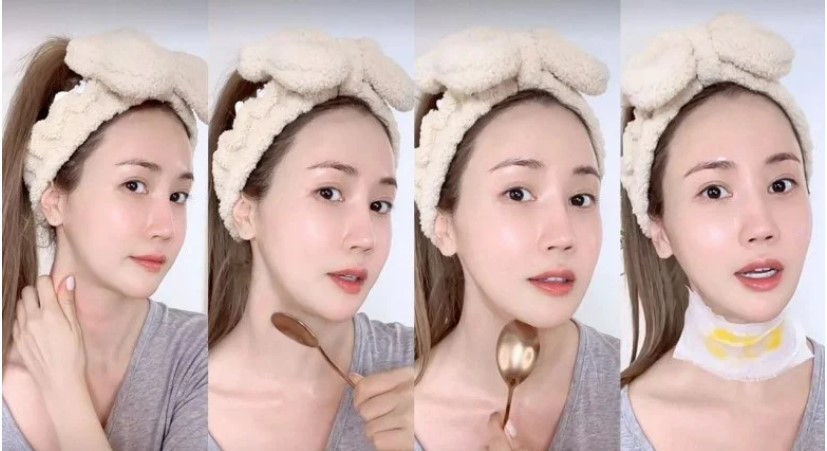 – Tiếp theo, thoa vaseline lên vùng bạn muốn làm đẹp, ngâm thìa vào nước ấm. Sau đó, dùng thìa kéo và massage theo chiều từ dưới lên trên để nâng cơ.