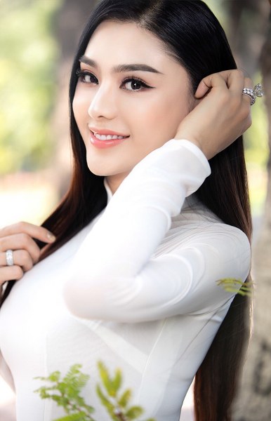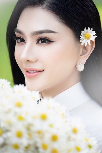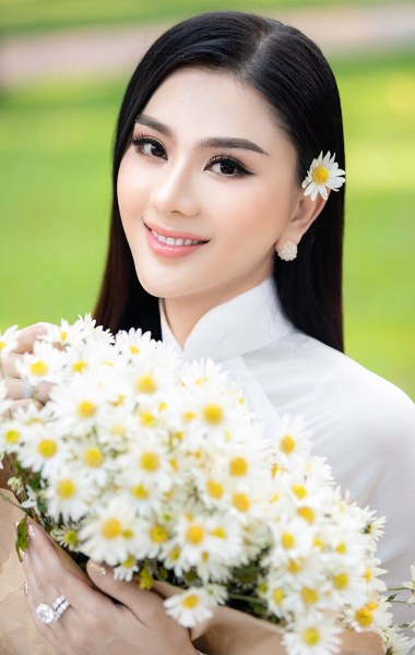 Nữ ca sĩ còn rất trẻ trung, xinh đẹp ở tuổi trung niên. Cô điệu đà làm duyên với kiểu tóc thả suôn đơn giản.