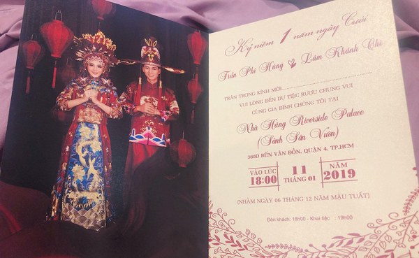 Thiệp mời kỷ niệm một năm ngày cưới vợ chồng Lâm Khánh Chi chuẩn bị gửi bạn bè