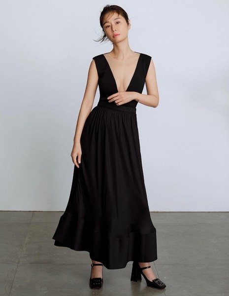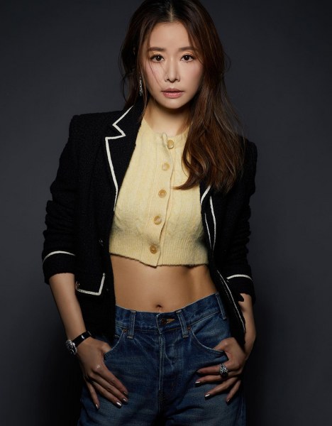 Diễn viên Đài Loan Lâm Tâm Như khoe dáng săn chắc qua thiết kế xẻ ngực, váy ngắn.