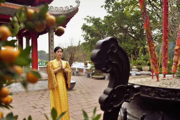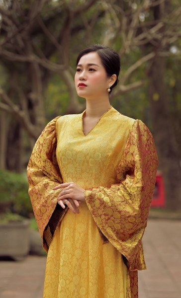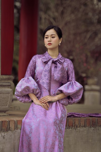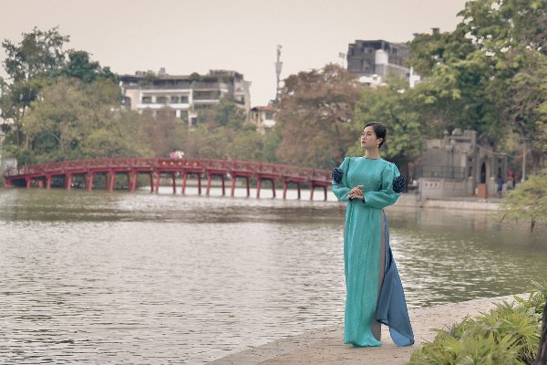 Lâm Vỹ Dạ hóa thân thành cô gái Hà thành khi trình diễn những thiết kế áo dài mang đậm dấu ấn Đức Hùng.