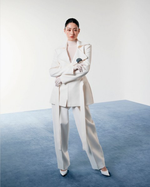 Lương Thuỳ Linh toát lên vẻ mạnh mẽ qua trang phục đứng form sắc sảo với chi tiết kim loại.