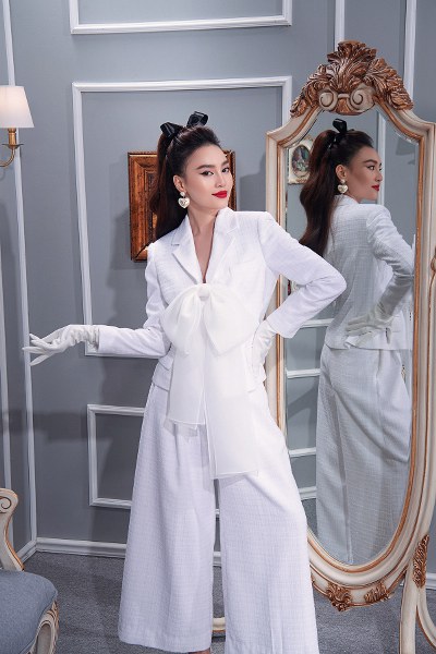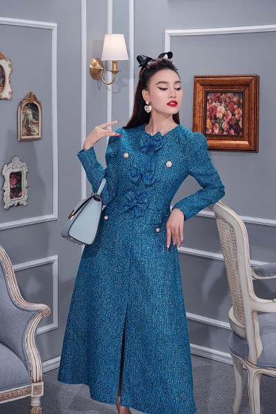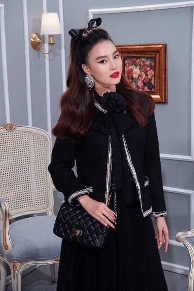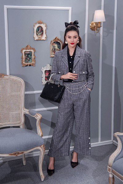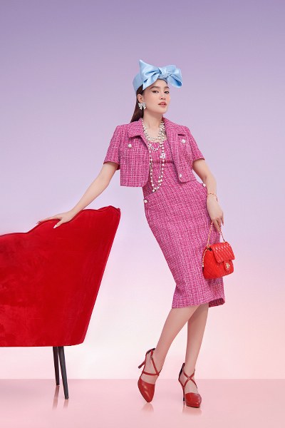 Diễn viên Lan Ngọc toát lên vẻ thanh lịch, duyên dáng trong các thiết kế vải tweed đa sắc của Đỗ Mạnh Cường.
