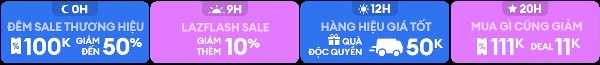 Ngoài ra, người dùng có thể chờ đón khung giờ săn hàng chính hãng giảm 50% và deal hot 111k, 11k mỗi ngày vào lúc 0H|9H|12H|20H.