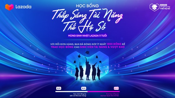 Nhân dịp Sinh Nhật lần thứ 11, nền tảng thương mại điện tử (TMĐT) Lazada Việt Nam phối hợp với Đại học Quốc gia Hà Nội (ĐHQGHN) tổ chức chương trình Học bổng “Thắp sáng Tài năng Thế hệ số” nhằm công bố và trao học bổng cho 100 sinh viên tài năng vượt khó.