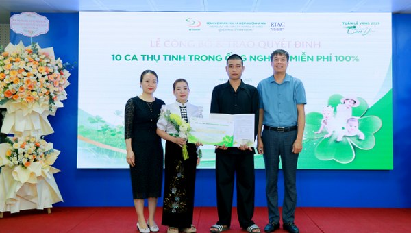 Mới đây, Bệnh viện Nam học và Hiếm muộn Hà Nội tổ chức Lễ công bố và trao quyết định “10 ca thụ tinh trong ống nghiệm miễn phí 100% và các chương trình xét duyệt miễn phí khác” trong khuôn khổ “Tuần Lễ Vàng 2025 – Cơ hội vàng cho giấc mơ tìm con yêu”.