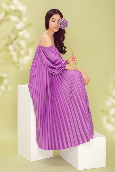 Lệ Hằng trông nhẹ nhàng, thanh lịch trong những bộ cánh dành cho mùa mới của nhà thiết kế Adrian Anh Tuấn.