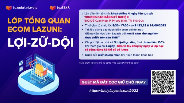Từ ngày 21- 24/9/2022, Học viện Lazada chính thức mở khóa học LazUni nhằm trang bị kiến thức kinh doanh tổng quan cho nhà bán hàng tại Thành phố Thủ Đức, TP.HCM.